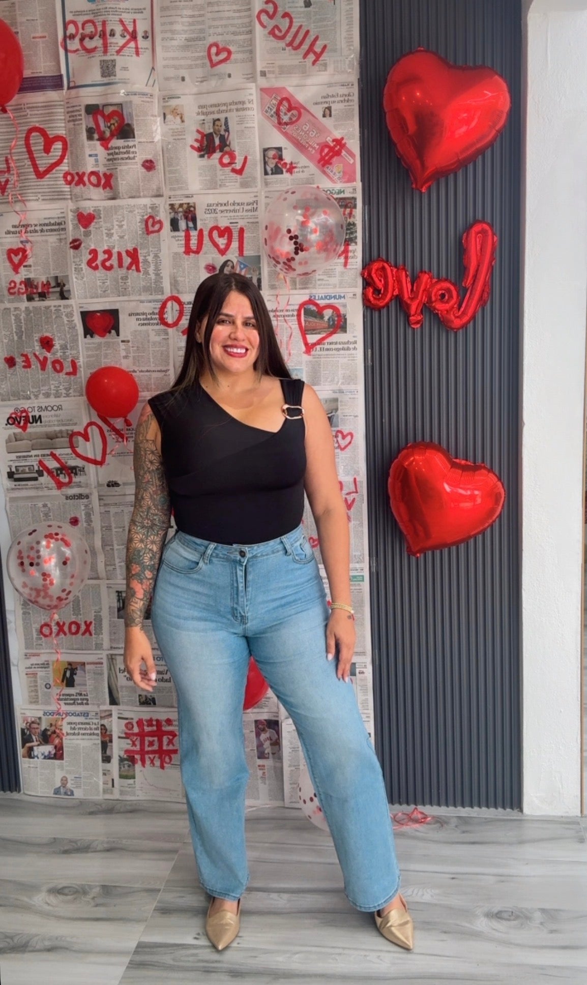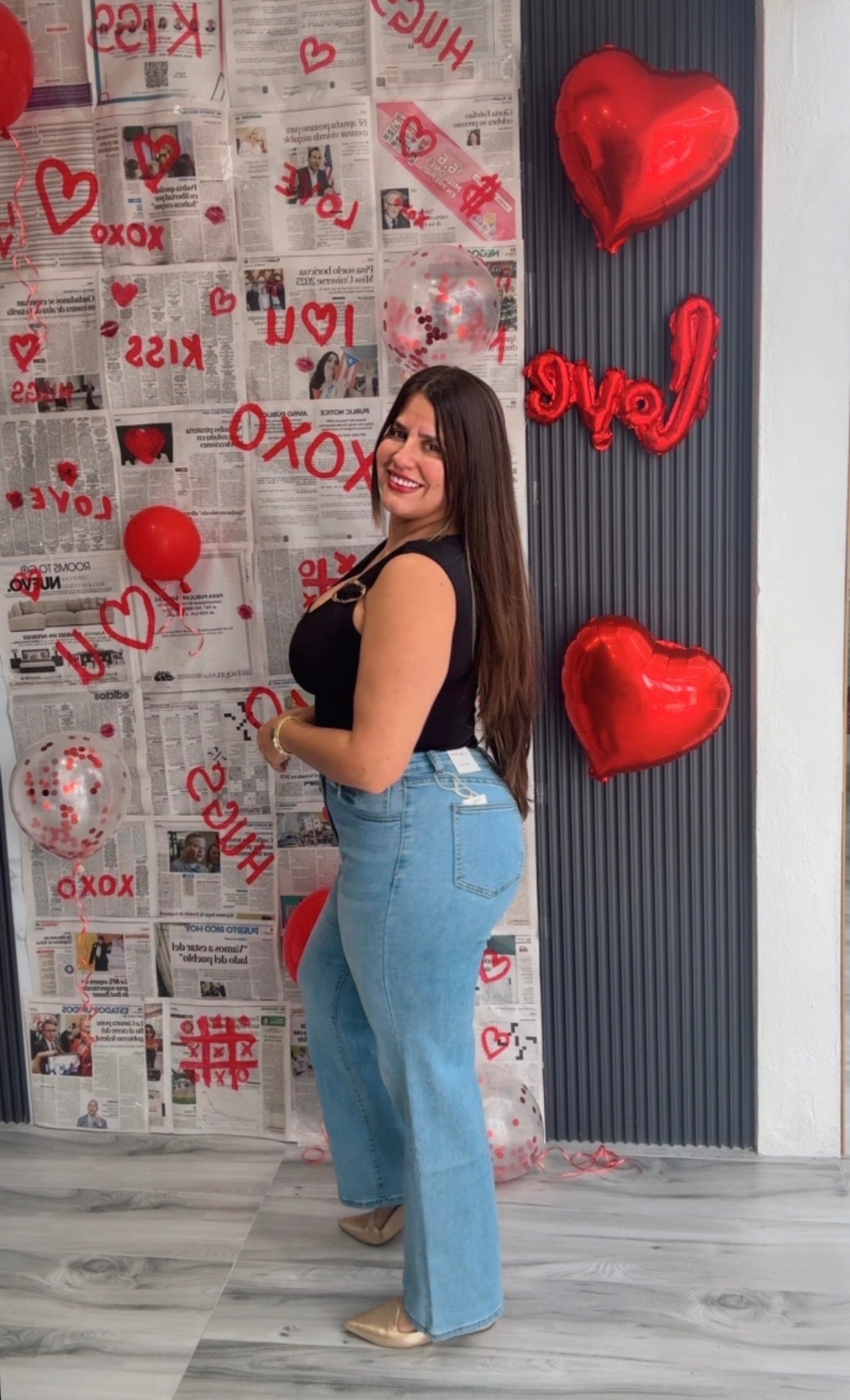 Jean wide leg en tono light wash con tiro alto que estiliza la figura.